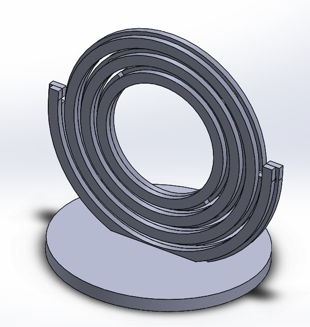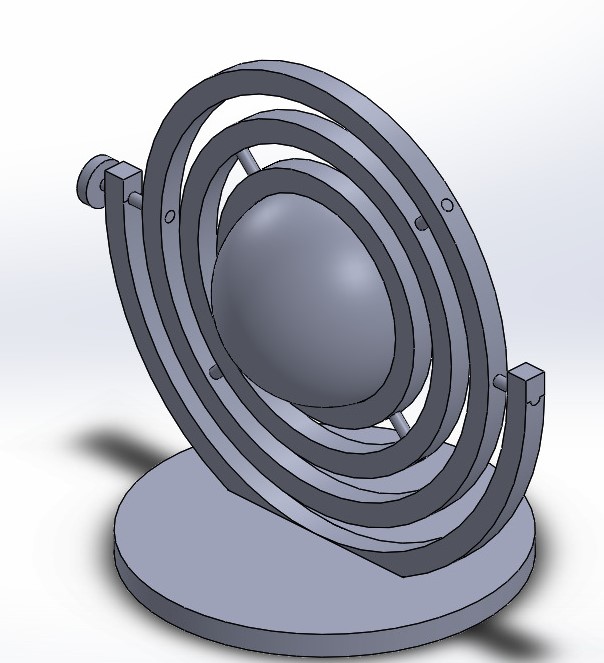 Once I had this idea in mind I created a CAD model in Solidworks. The pictures below show the major design revision I made. The rings would be made of laser cut wood and the center would be made of a resin skull inside a resin ball. The skull will be gold to represent the non-perishable things we can accomplish with out lives. The pins will allow the rings to rotate creating a gyroscopic spinning effect.