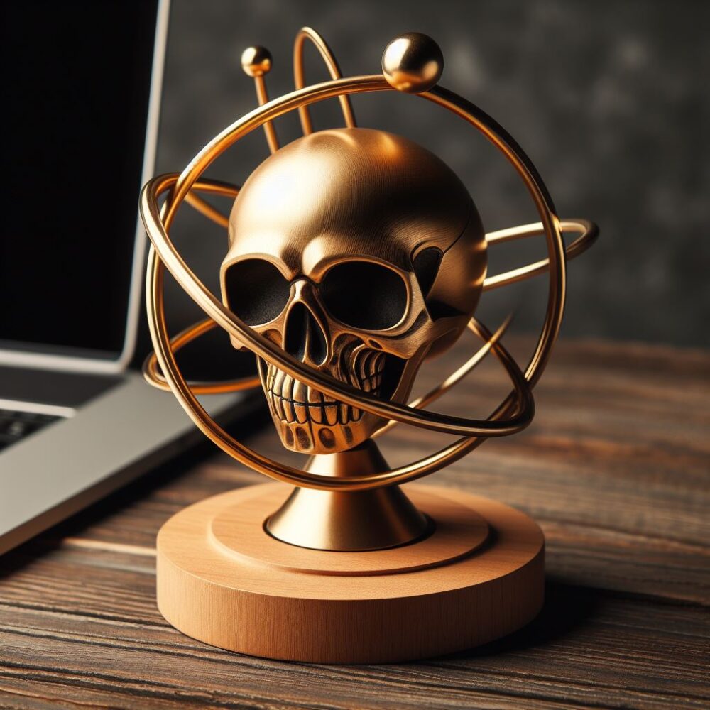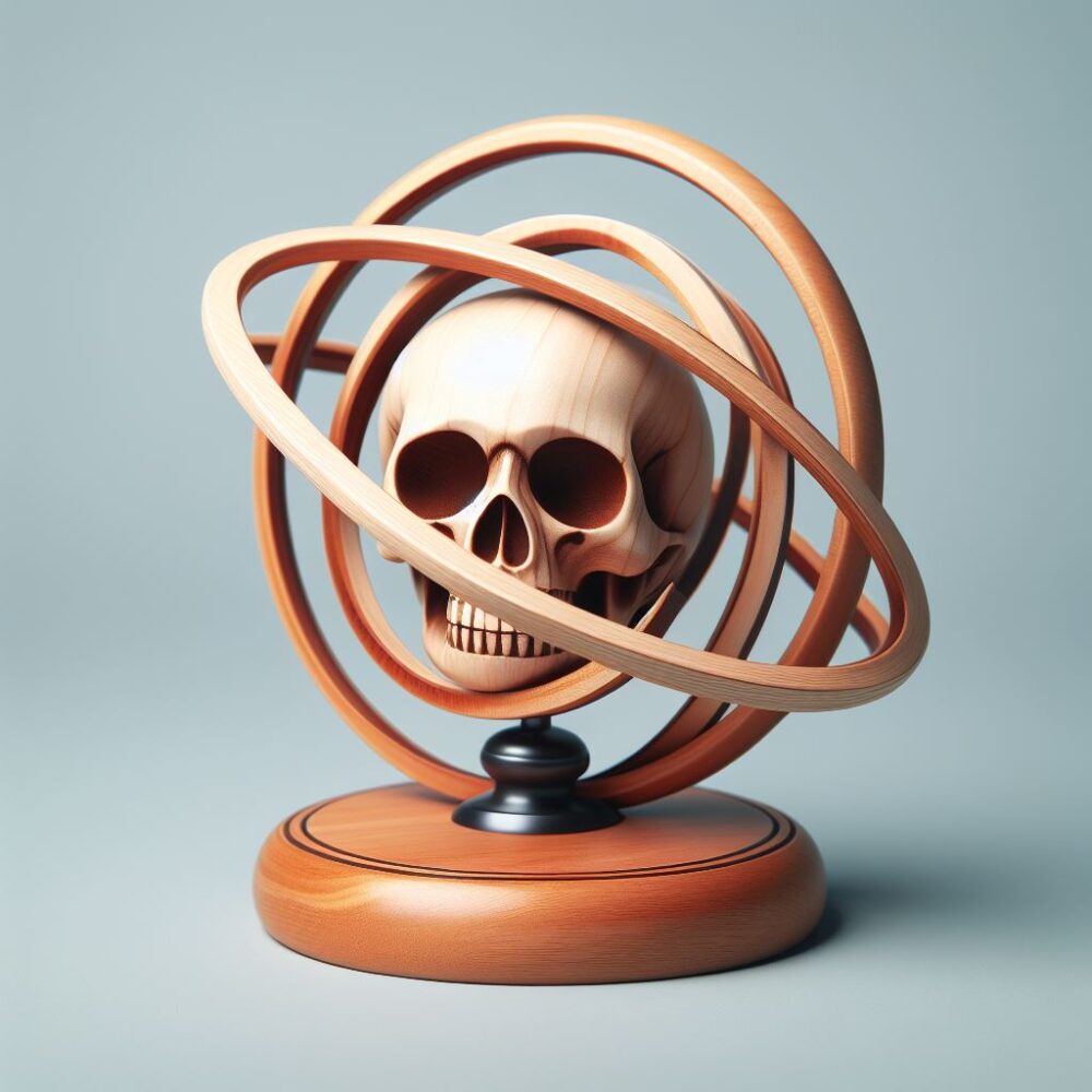The largest triumph, however, is the aesthetic. I believe this presents a perfect blend of mid-century modern and a more gothic memento mori aesthetic. The laser-cut wood creates a nice fade from dark to light on the edges. The wood grains are vibrant and visible. There are no visible joints of fasteners besides the shiny and dark metal fasteners that add to the look. The gold flake inside the skull creates awesome reflections that are accentuated by the magnification of the clear resin ball. The magnification also distorts the skull when looking at it from other angles, which I originally did not care for. However, once in the rings this actually adds to the aesthetic. In the same way that the skull is distorted, we tend to distort the idea of death in our culture. We prefer to look at life as a big golden ball and ignore the skull that is looking us dead in the face.