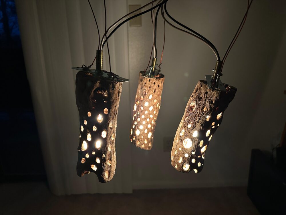 While there is room for further enhancement in the overall appearance of the light, which I fully intend to explore, I consider the current iteration of the project a success. This assessment is based on the goals I initially set for the project, which primarily focused on achieving a balance between aesthetic appeal and functionality. The light successfully captures the rustic charm and visual allure that I envisioned, with the driftwood lending a unique and natural texture to the design. The play of light and shadow created by the intricate gaps and knots in the driftwood adds depth and visual interest to the piece, enhancing its overall appeal.