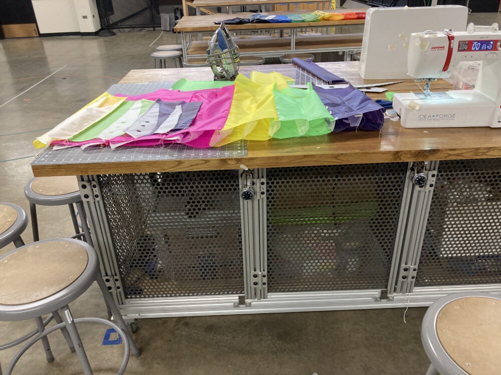 At this point in the project I had already spent about 6 hours cutting materials and 5 hours sewing. I liked how my kite was starting to turn out so I was hesitant to make any choices that would lead to a sewing mistake ruining the final product. I made the decision that sewing on the dots as planned would be a bad idea. I would have to learn a new sewing style (applique), the applique dots had a higher chance of me making a hard to repair hole in my kite, and I did not have unlimited time. I committed to this decision by starting to sew profiles across the midsection where I was planning to sew the dots. In my planning I would be sewing over the dots, but my plans were changing.