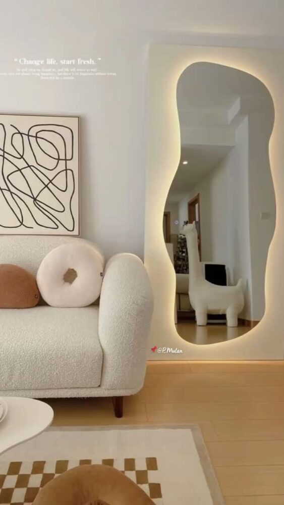 My vision for this project was to combine modern and natural aspects with organic abstract aesthetics to create a wavy mirror. The modern elements would be displayed through neutral color pallets and materials and the organic aesthetic would be carried through with textured and layered designs within the frame. Overall, I was not able to make the mirror in the original scale of the mirror I purchased but I was still able to keep it in the largest size possible for my fabrication process. As for the design, I feel as though I kept to my original vision with it being organic modern and creating a functional piece of furniture that also acts as an interior design piece.