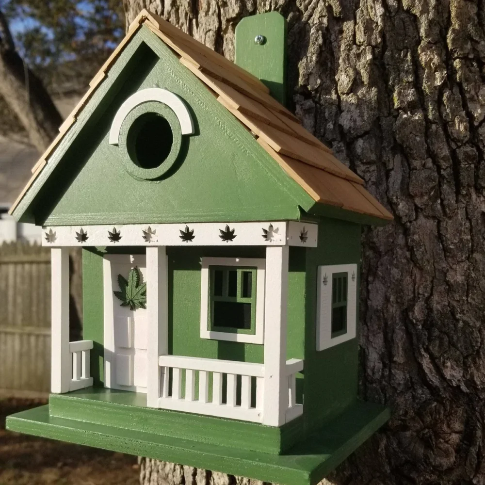Above is the prototype I make in SolidWorks. The prototype does not feature a door, but the back panel opens up to reveal the inside of the bird house. This is a feature of my actual design, so that the user can clean out the bird house at the end of the season. My idea of a bird house came from the example below. I thought the green bird house looked cute, and had a lot of the features I was looking for. My design does not feature leaves, but I wanted my design to look similar in a lot of other respects.