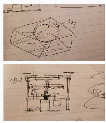 My first step with any project is to get the idea figured out in my head. Once I have a rough idea of how the mechanism will look, I sketch it down on paper. Below are some initial sketches of both the original design and redesign.
