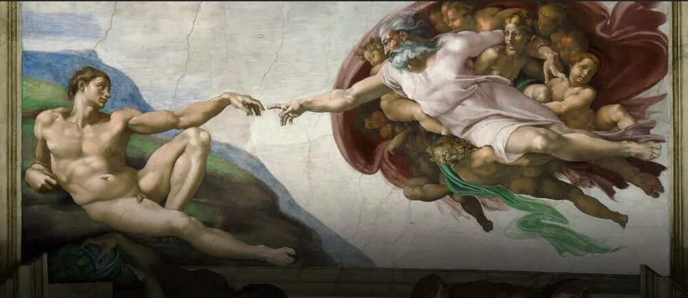 Michelangelo Buonarroti: The Creation of Adam, c.1508-1512, Sistine Chapel ceiling in the Vatican.