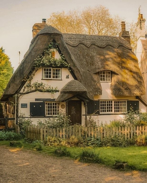 The aesthetic embraces natural motifs, such as using wood and natural features to deepen that connection with nature. Earth tones like green, grey, and brown all serve the same purpose and help make someone feel like the could be outside in a forest grove while still being indoors. Things like plants and animal furs can also be implemented to deepen the feeling that the modern world has melted away outside of that space. The thatched roof in combination with the vines growing on the home below (3), as well as the faded fence keeping the lush lawn away from an overflowing garden all come together to make that home seem so lived in and comfortable by making it appear to be another element of the natural landscape.