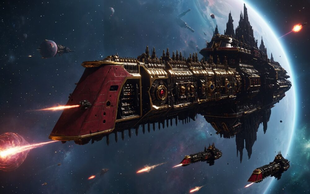 The gothic themes are even reflected in the battle ships of the Imperium, which are essentially flying Cathedrals.