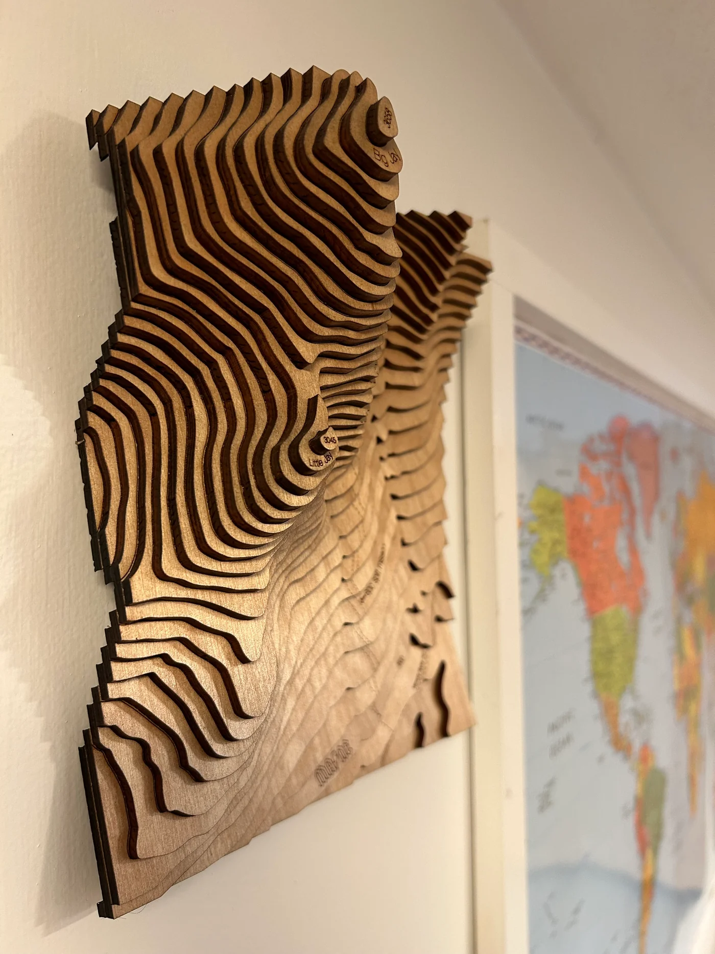It took me some time to decide on what to do for this project and while looking through past students’ ideas I came across the work of Palmer Dick-Montez. I had seen some topographic art before and had always enjoyed it, but Palmer’s take on the physical representation of the piece really stuck with me. The addition of the moss seals the deal for me, and I think it adds so much to this piece. Palmer said their take on the project was representative of the ‘industrial chic’ aesthetic, but I’m going in a different direction. I’m going to be trying to achieve an abstract aesthetic for this project.