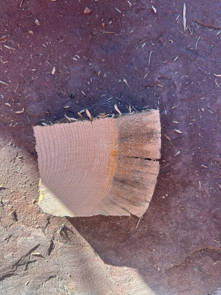I repeated this process until all eight of the logs were used. Figure 3 is a progress picture of what these blocks looked like as they were initially cut. Many of them had frayed edges and splinters which made them difficult to hold.