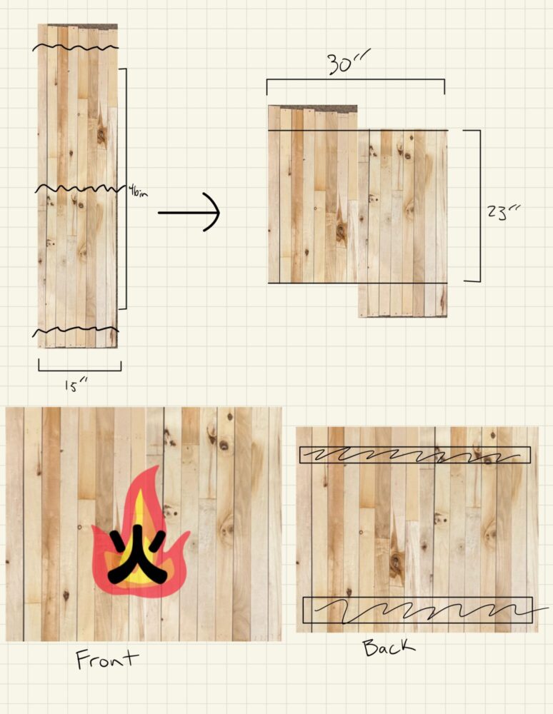 Dimensionally, I plan to cut the wooden slats below the screw and staple artifacts to maximize the amount of ‘nicer’ looking wood. After doing this and cutting the boards in half, I can achieve a piece that is 30 inches by 23 inches, which seems to be a healthy size for wall decor. I plan to fixture the boards together like a fence and hang the entire piece on a couple of nails.