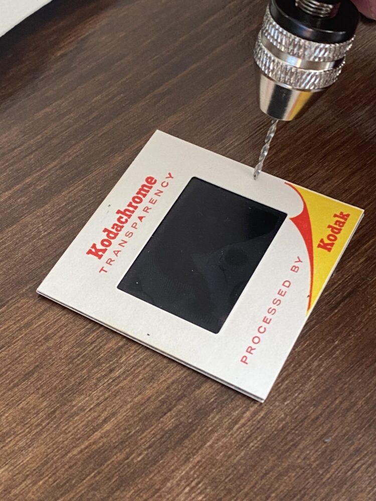I had to buy a tiny hole puncher for this project, which has not arrived yet, but I’m worried it won’t be strong enough to punch through the thick paper of the film slides. If it isn’t, I’ll probably drill them too, which will be messier than I’d like, but I’ll do it if I have to.