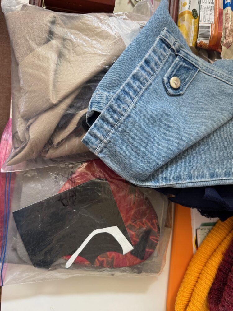 I have started gathering supplies for my upcycling project from my own crafting supplies as well as from Art Parts. From Art Parts, I sourced a bag of leather scraps, a bag of buttons, and various odds and ends to add onto the stuffed animals. From my own supplies I found a bunch of thick paper that when crumpled up many times will eventually act like “fabric.”