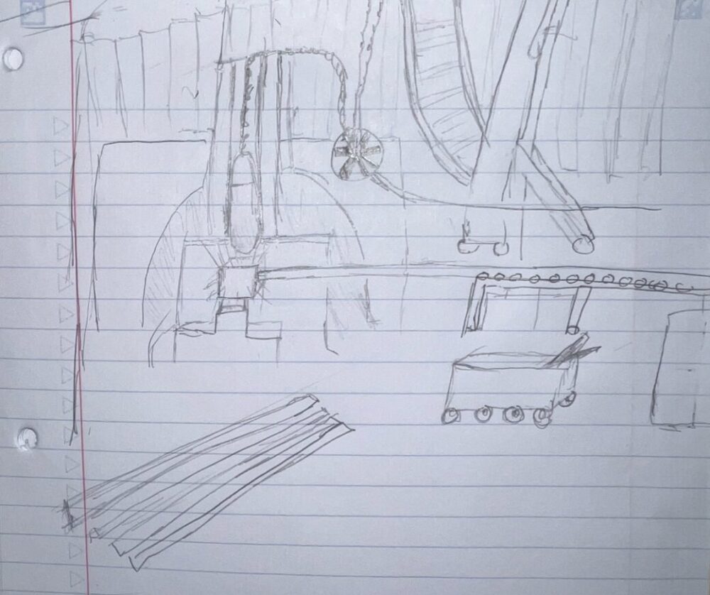This is my sorry attempt of a steel plant. It is meant to display hammering bars being pulled up by pullies to form the steel head.