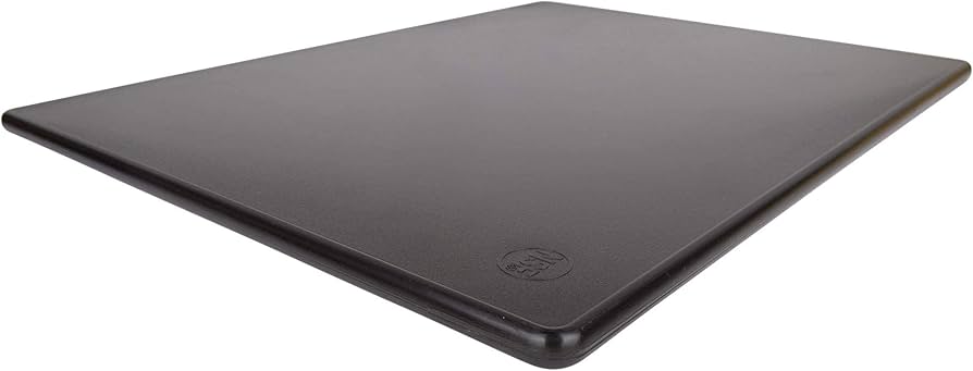The edges would be sharper and stand out compared to normal cutting board ideals. The black or gray surface would have a non-reflective finish, with the matte texture adding to its modern appeal. There would be no imperfections, just a solid, smooth slab of plastic designed for functional use.
