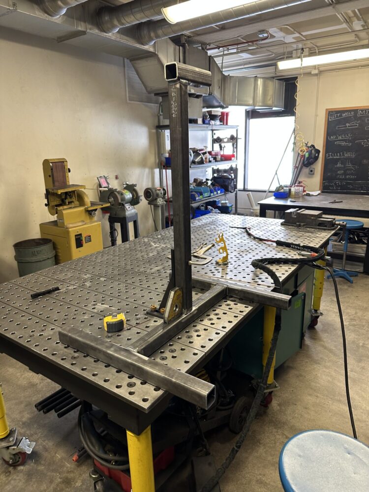 My original Upcycle project is a work stand for a sheet metal shrinker/stretcher tool. A metal shrinker/stretcher is a popular tool to use when working sheet metal into complex shapes as it allows for a worker to form compound curvatures in the thin metal. I decided to build a work stand for this shrinker/stretcher as I had no way of securing the tool in place while I feed sheet metal through the jaws and actuate the operating lever. An alternative to a work stand is to secure the shrinker/stretcher in a bench vise. However, this affects the functionality of the machine when working with large sheet metal panels that require clearance.