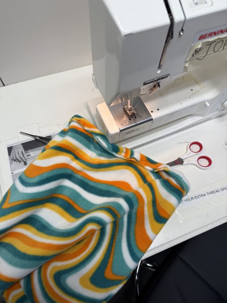 My project focuses on creating these Four-Point Hats from thrifted fleece fabric. The goal is to make a few hats for under $10, proving that ski gear doesn’t have to be expensive to be functional. These hats are selling online for $20 to $30 each which I think is a bit of a steep price. I have been wanting one of these hats for a while and I thought that this project was the perfect opportunity to make it. My goal for the project was to find fleece that reflect the fun and bright patterns associated with the “ski bum” aesthetic. I also want to run trials to figure out the best way to sew the hat and I want to ensure the hat can actually be worn and functional, which also reflects the “ski bum” lifestyle.