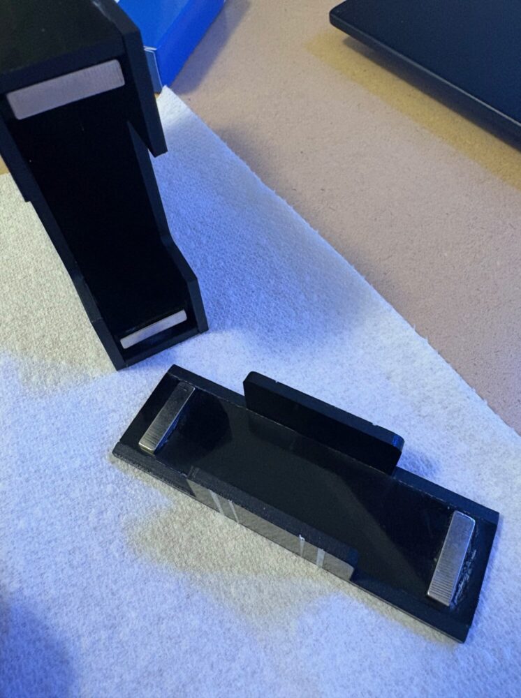 Finally, to add the magnets, I stuck them in pairs, and glued one of them inside the box. To glue the pair of magnets to the lid, the box was designed for the pair to already be flush with the lid. However, this was not the case. With the tolerance stacking up from the acrylic pieces being laser cut, there was still a gap between the top magnets and the top of the box. Adding some shims made sure the top magnet was flush with the top box. Finally, adding glue to the magnets and setting the lid on top of it finished off the lid and the box.