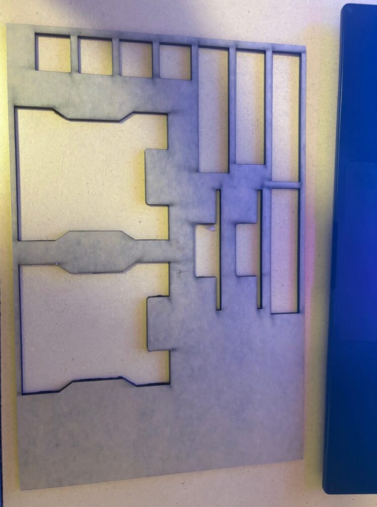 Once I had an initial idea of what to do, I had to figure out how to actually make this box. While I originally was considering using wood and laser cutting to make the box, I remembered that I had scrap acrylic from a previous project collecting dust. While the sheet wasn’t completely new with some parts already cut out from it, there was still useable material on it. The limited amount of material only allowed me to have a small box. The acrylic was a 1/8 black sheet, which was perfect for the aesthetic I was trying to achieve. I cut off the unusable parts and had a clean sheet ready to be laser cut.