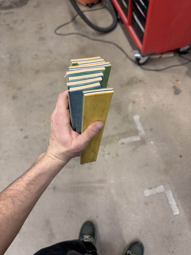 - Sanding for a Smooth Finish: Progressing from rough to fine sandpaper, I sanded each board to a 300-grit finish, uncovering vibrant colored layers within the plywood.