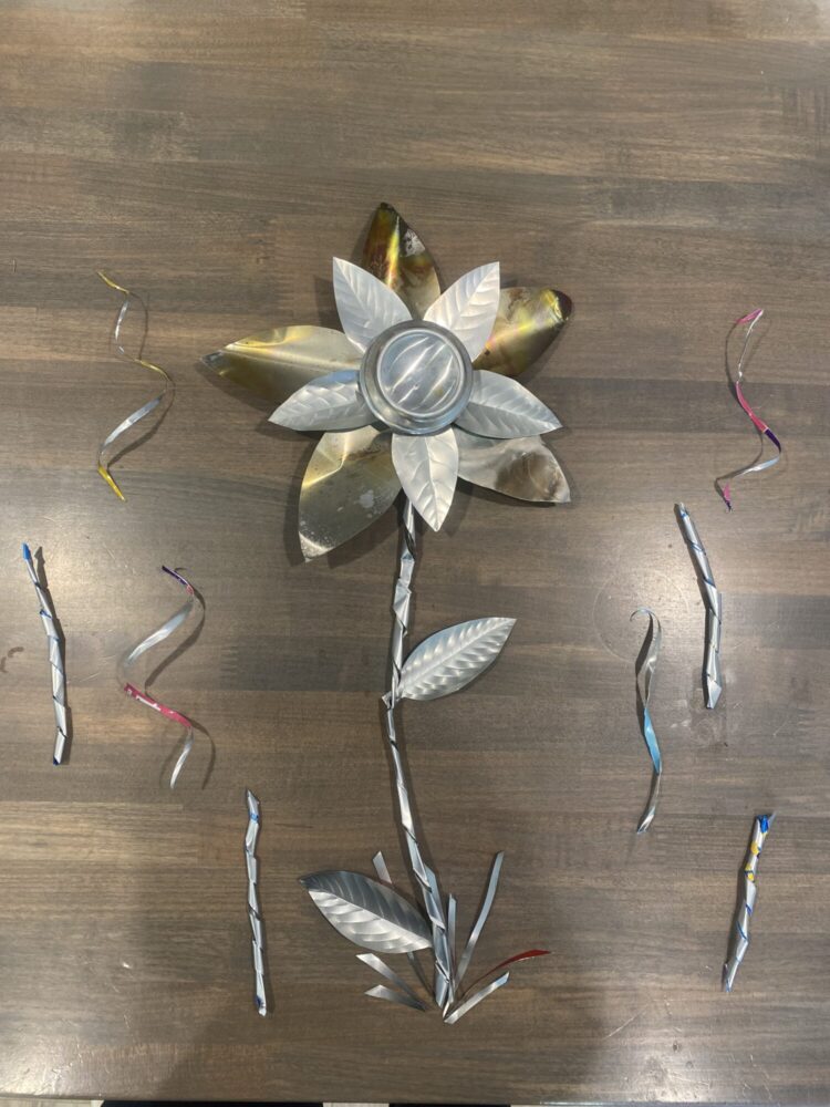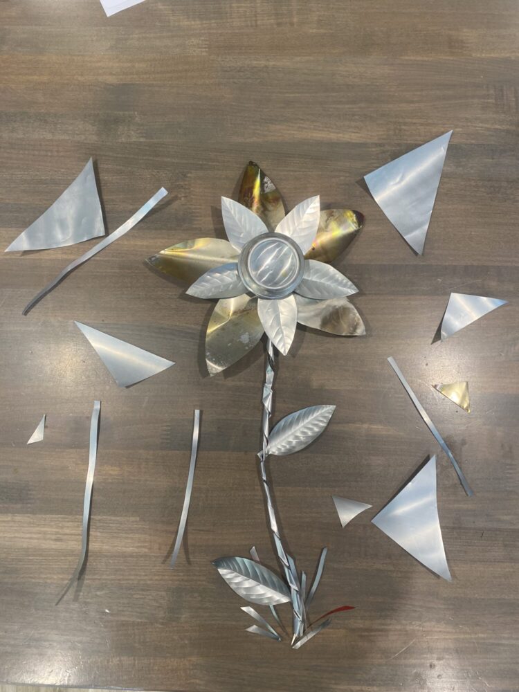What began as a simple upcycling project using aluminum cans has turned into an exciting exploration of junk art, abstract design, and the possibilities of reimagining discarded materials. The process of experimenting with textures, colors, and forms gave me a deeper understanding of both the materials I was working with and the principles of abstraction. Despite facing challenges, particularly with tempering the aluminum, the project allowed me to experiment freely and embrace the unexpected results that came from the process.