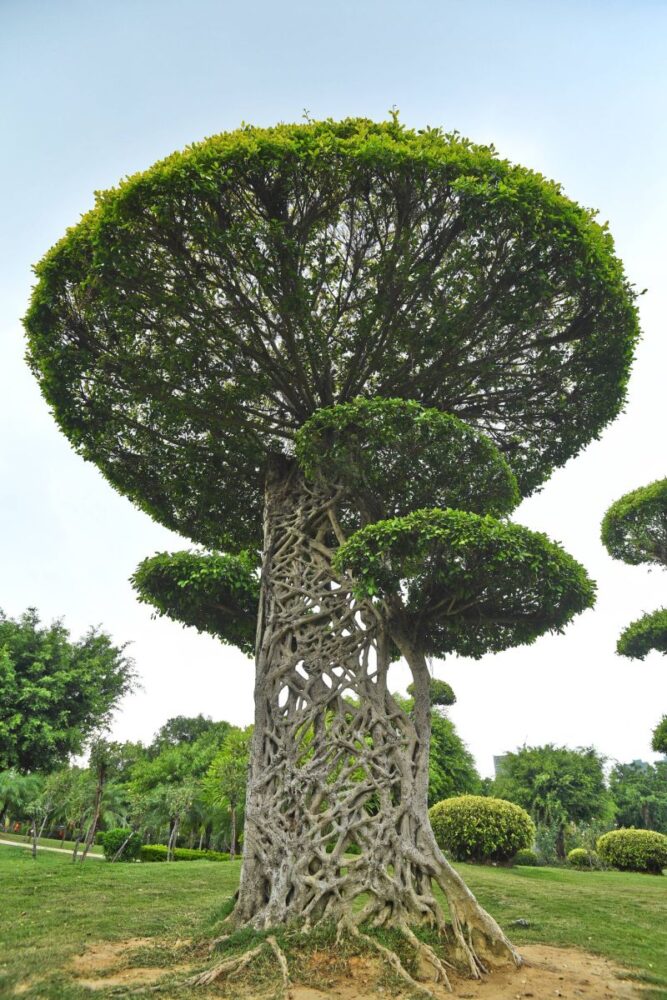 A strangler fig is a parasitic plant typically found in a dense, tropical environment. It evolved to adapt to the nutrient competitive environment by entrapping its victim with its aerial roots, limiting growth and stealing their nutrients. As the host tree dies and begins to rot away, the aerial roots of the fig remain, leaving a beautiful intertwining pattern forming a hollow cylinder (see figure 4).