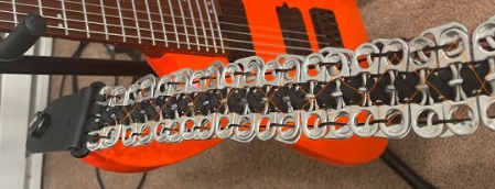 In addition to this, I might experiment with adding some color to the strap. One idea is to thread colored string through the soda can tabs to match the color of my guitar. However, I really like the neutral black and metal look that the strap has, so adding color may only ever be an experimental thought.