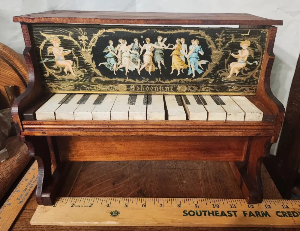 (Credit: “Antique Schoenhut Piano Child’s Doll Toy Piano Cherub LATE 1800’S” by First State Antiques on eBay)
