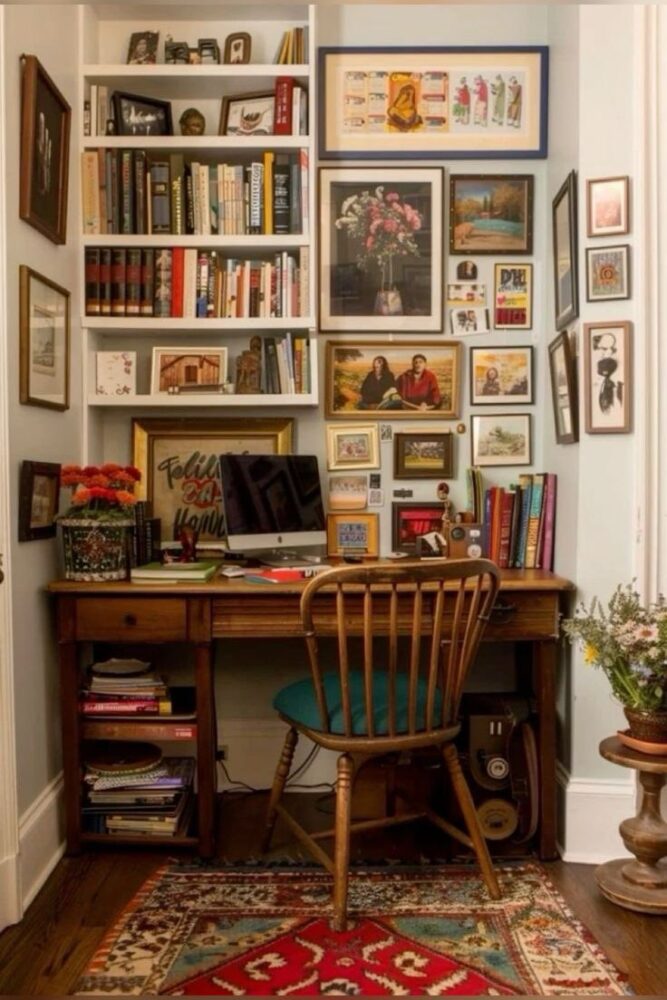 My personal aesthetic is a messy, vintage, neutral, maximalist style. I’ve only recently started decorating my own living space beyond just my bedroom, so I want to establish an aesthetic before I start buying too many things. I want this project to look good in my space and match the other pieces I already own. My aesthetic leans heavily on the Arts and Crafts movement of the 20th century. I especially like the idea of visible construction. I recently made a shelf out of my grandparents’ old wooden ladder. It’s splattered with paint from all their projects since they moved into their first home together. I didn’t paint over it or try to hide the aging. I simply placed panels of wood between the rungs of the ladder, making it clear that I built it. I want this project to reflect that same aesthetic since I’ll be making it myself, and I want that craftsmanship to be visible.