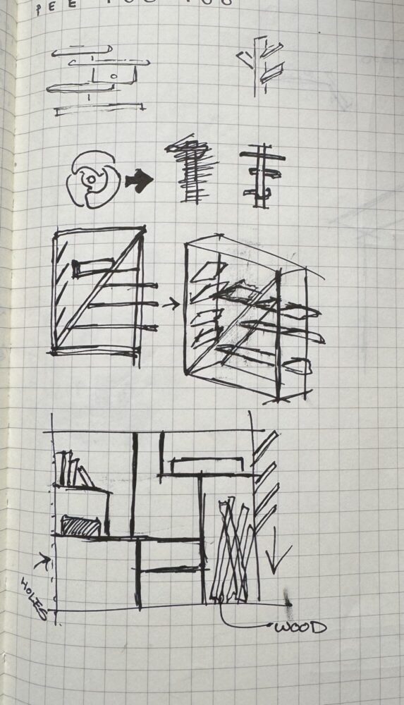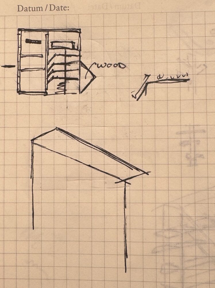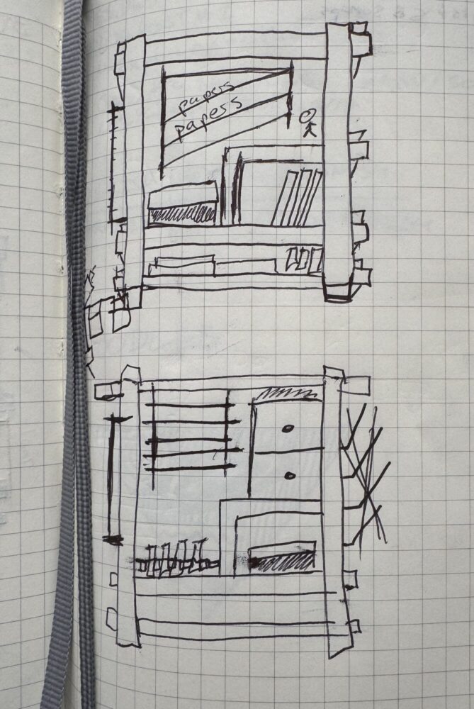 So far I’ve done the following sketches, starting a plan as to how the shelves will look, and where each piece will exist.