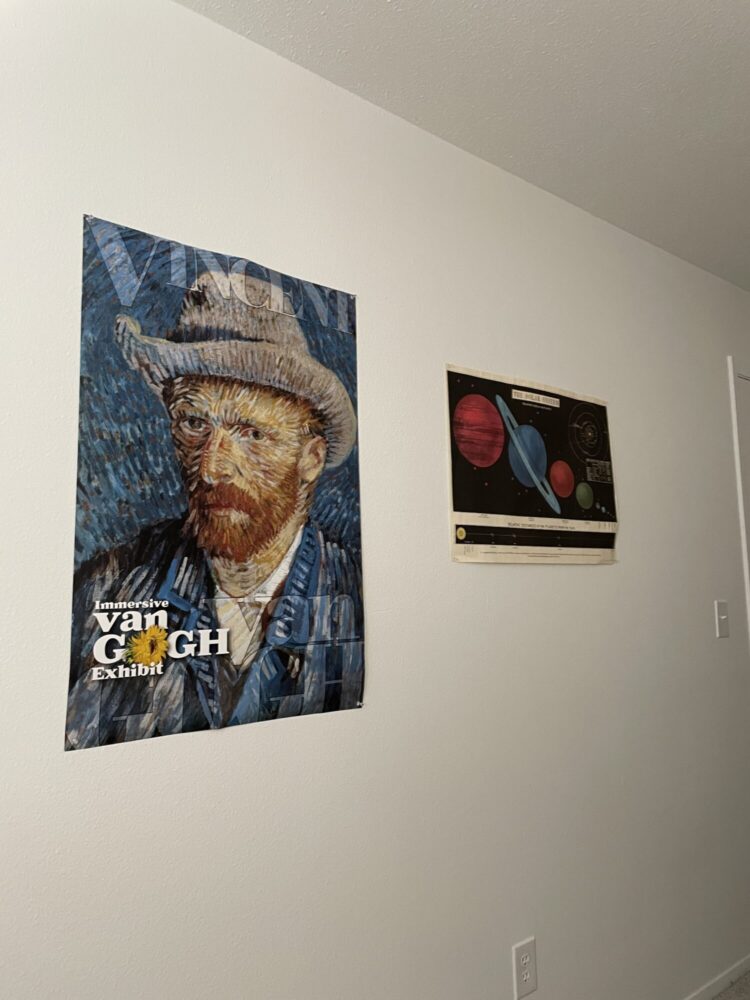 My personal aesthetic can be best described as yacht core. I just see a lot of yachting in my future with a ton of friends and music and even more friends. But thats the future, right know my personal aesthetic is probably closer to 8th grade nerd core. Looking around my bedroom I have a minions poster, a poster of Van Gogh because my name is similar, and a planets poster, something I havent been too interested in since I discovered the universe.
