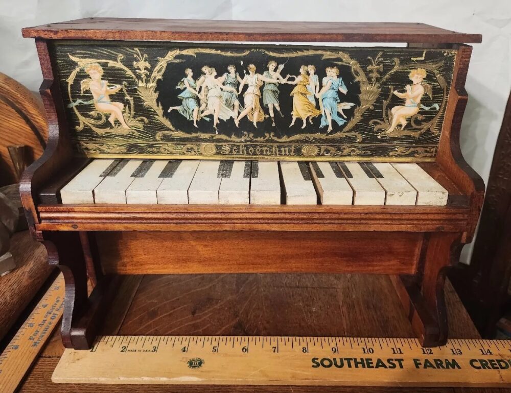 I started this project thinking I would make a toy piano with a vintage aesthetic, designing it based on old Schoenhut pianos. I planned to use an antique painting method with a dark turquoise color. However, like most projects, the base of this design can be easily adapted to any aesthetic. When we did the alternate aesthetics post, I realized that I enjoy the mid-century modern aesthetic a little more than the vintage style. I started questioning whether I should change the aesthetic and design of my project, which wouldn’t be too difficult at this stage. After briefly considering an entirely different project, an instrument rack, I returned to the toy piano idea. I then remembered an upright piano my family had when I was a kid and wondered if I could design it based on that.