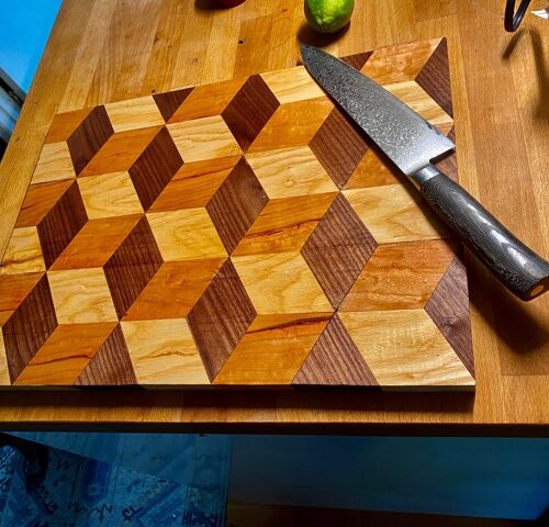 This project is an exciting challenge that allows me to blend function with artistic design. Through careful planning and execution, I aim to create a cutting board that is both practical and visually striking. My goal is to push my woodworking skills while exploring my aesthetic possibilities. The process of designing, building, and refining this project will not only help me develop technical skills but also deepen my understanding of the interplay between visual perception and physical materials. I look forward to seeing how the final product comes together and how effectively the illusion translates into the final piece.