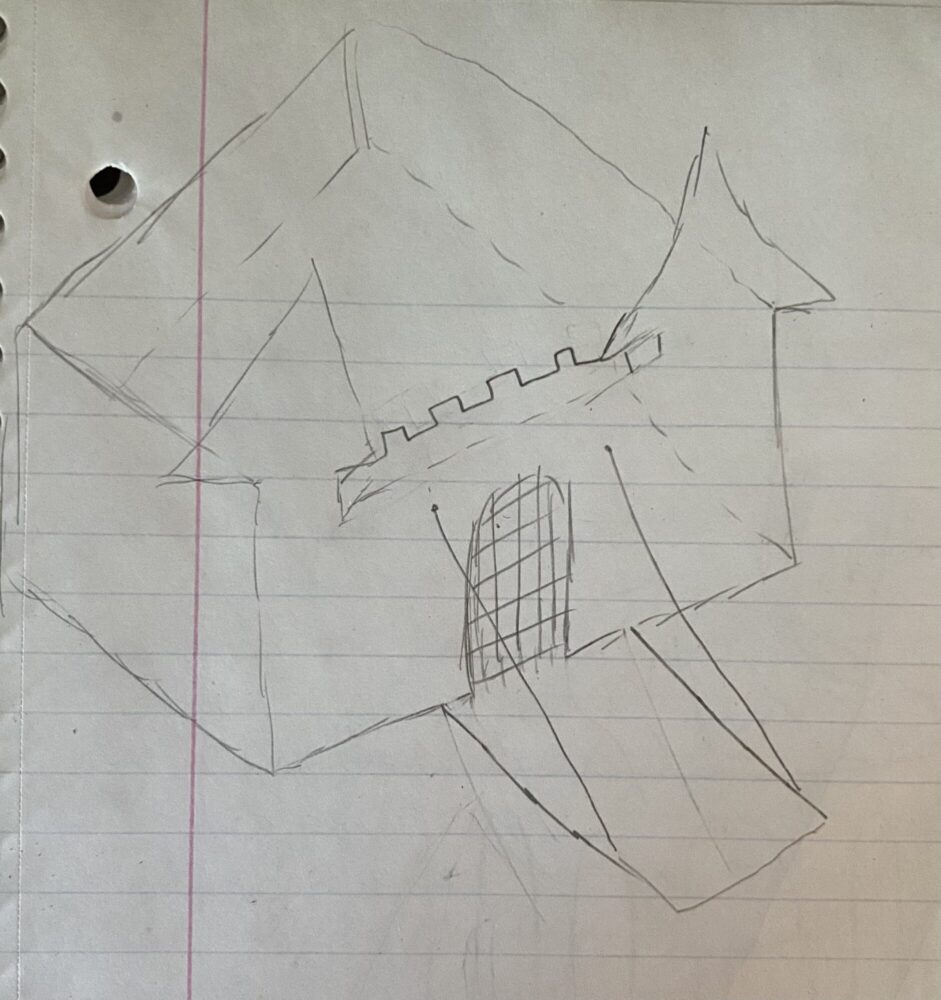 I plan to have a pretty classic medieval castle design, with the prominent conical features on the corners, square featured ramparts, and a stone exterior. A stretch goal would be to include some items in the interior courtyard to make it look lived in. The sketch above is very basic, and in my final design I don’t want it to be as simple as a square, but I don’t think I have the capabilities at this time to make a fully realized castle with all essential rooms and places. So, it might be more like a fortress, with walls surrounding an interior, so that I don’t worry about rooms and such.
