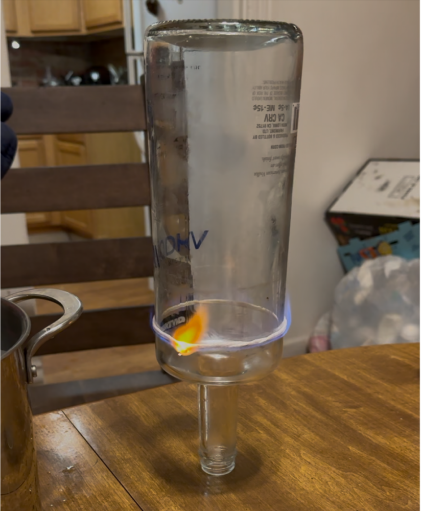 - Igniting the string – Once lit, the bottle was slowly rotated to evenly distribute heat along the cutting line.
