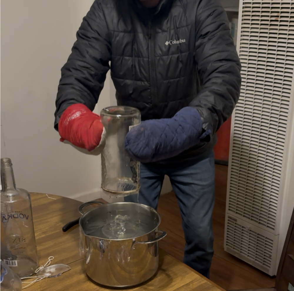 - Thermal shock – Immediately after the flame burned out, the bottle was dunked into a pot of ice-cold water. The rapid temperature change caused the glass to fracture along the heated line.