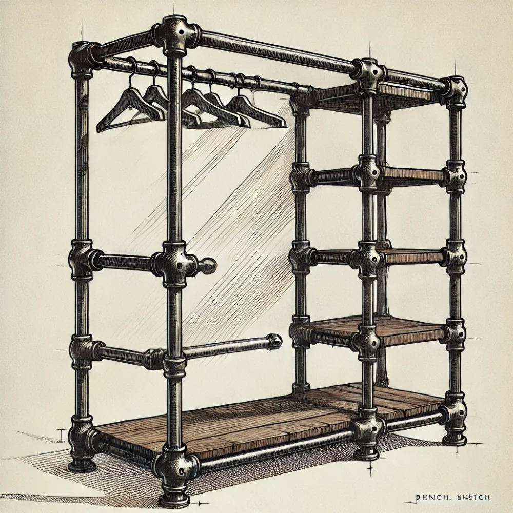 One of my biggest motivations for this project is to enhance the urban and vintage aesthetic of my bedroom. I want the rack to blend naturally with the existing decor, reinforcing the retro New York City aesthetic currently in my bedroom. The materials, specifically black iron pipes and stained wood should contribute to a loft-like, slightly rugged yet refined look. Success means looking at the finished piece and knowing it belongs in my space. Beyond aesthetics, the clothing rack needs to be practical. It should provide enough space to neatly store my clothes while also allowing for creative displays of books, knick-knacks, and art pieces. I don’t want a purely decorative piece—I need something that serves a real purpose in my daily routine. If I find myself using it effortlessly and consistently, I’ll know I got it right. One of my favorite parts of the design is incorporating caster wheels, which will make the rack easy to move. This ensures flexibility within my current bedroom layout and means I can take the piece with me when I move. A successful build will be one that’s free-standing, sturdy, and easy to transport without compromising stability. Since this is my first time working with metal pipes and fittings, ensuring the structure is strong enough to hold weight without warping or becoming unstable is crucial. If the rack can hold clothes, books, and other personal items without issue, I’ll consider it a win. The connections need to be properly fastened, and the shelving must be secure. Finally, while I want the rack to fit my current space, I also want it to be adaptable to future living arrangements. The true test of success will be if this rack remains a staple in my home, no matter where I go next. If I can integrate it into different spaces without it feeling out of place, I’ll know I designed it well.