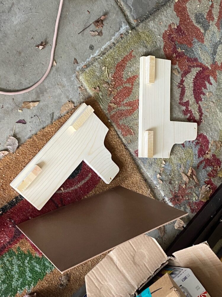 On the next day I worked, I didn’t take many photos to document my progress, but I attached the back panel and added a couple of pieces of wood across the front of the piano. I used wood dowels, which involved buying a doweling kit. It was fun to learn how to use it.