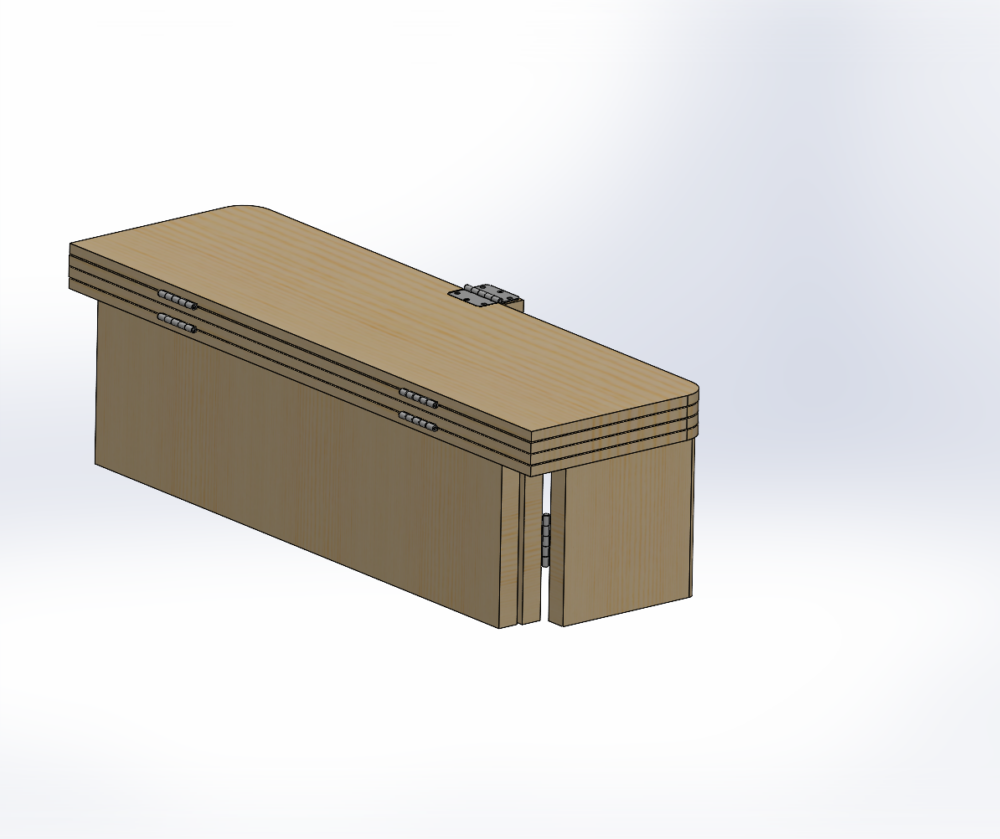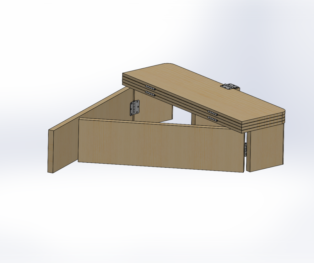 All these redesigns have left little room for actual construction. However, I have been able to find most of my materials. My friend had a lot of pre-stained .5″ plywood that I can use for all of my flat panels, and I was able to find a cheap 10 pack of hinges from home depot. All I need is a 2″x12″x12′ board for the supports and I can cut everything to shape.