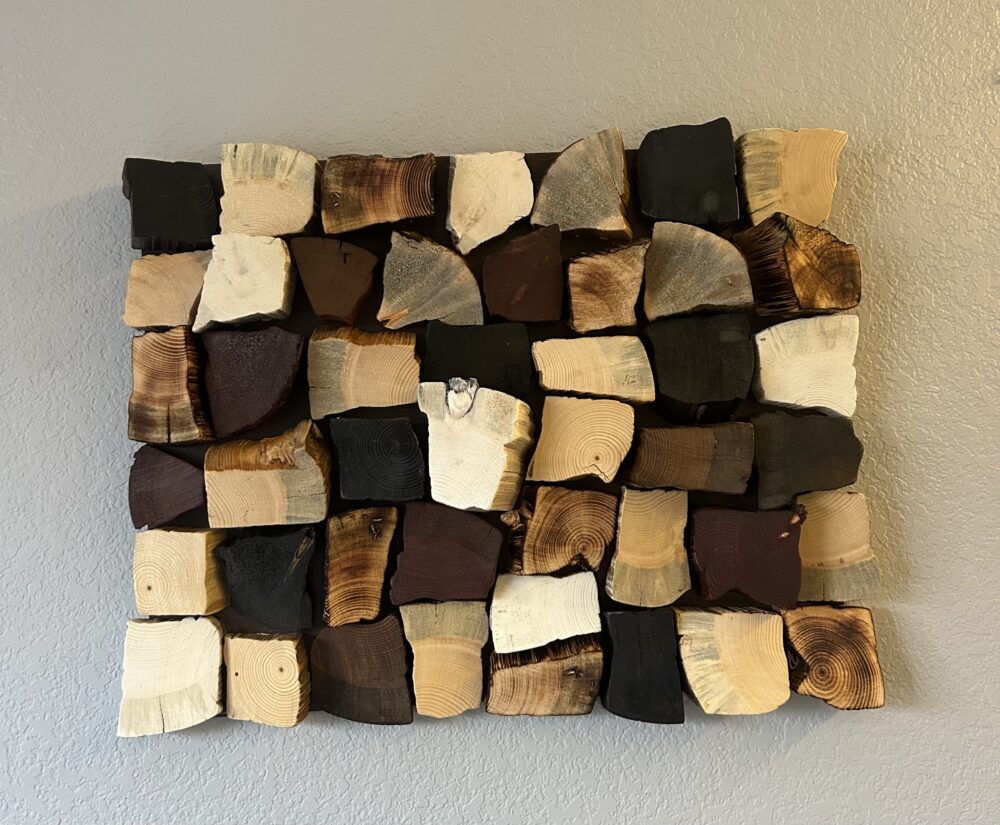 My original plan involved using uniformly cut blocks, but I ultimately embraced the natural variation of the wood pieces. This shift added organic character to the final composition and reinforced the aesthetic I was targeting. The final artifact is a warm, visually engaging wall décor that highlights wood grain, asymmetry, and balance—a piece I’m genuinely proud of, especially considering the constraints I worked within.