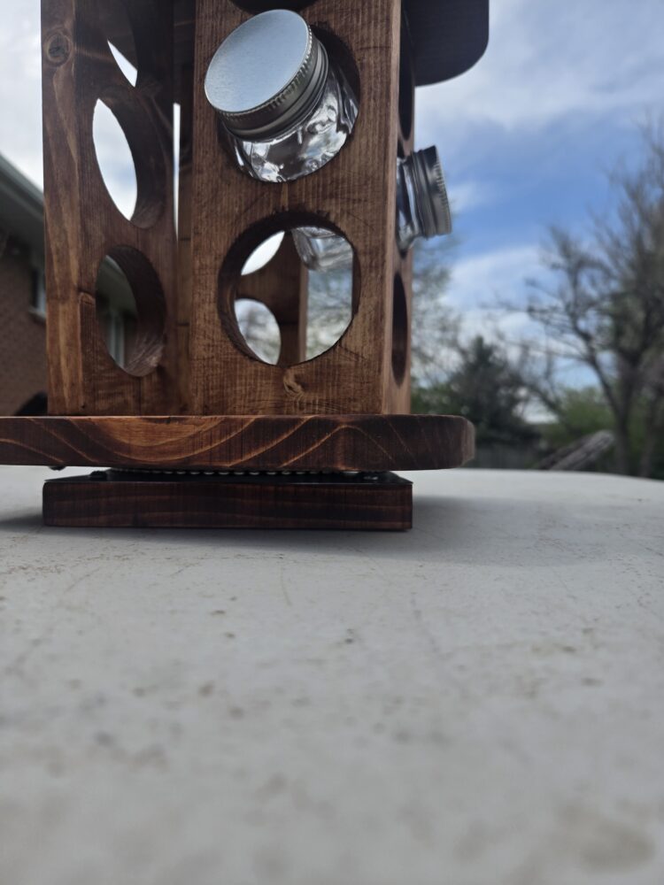 I also paid close attention to the small details. I made sure the wood edges were sanded smooth, and I made sure the stain was even across all pieces. I glued the clay lids securely onto the jar lids using E6000 glue, which is strong and dries clear. After painting the lids, I sealed them with a water-resistant Mod Podge to protect the paint from chipping or getting ruined if the lids are handled a lot.