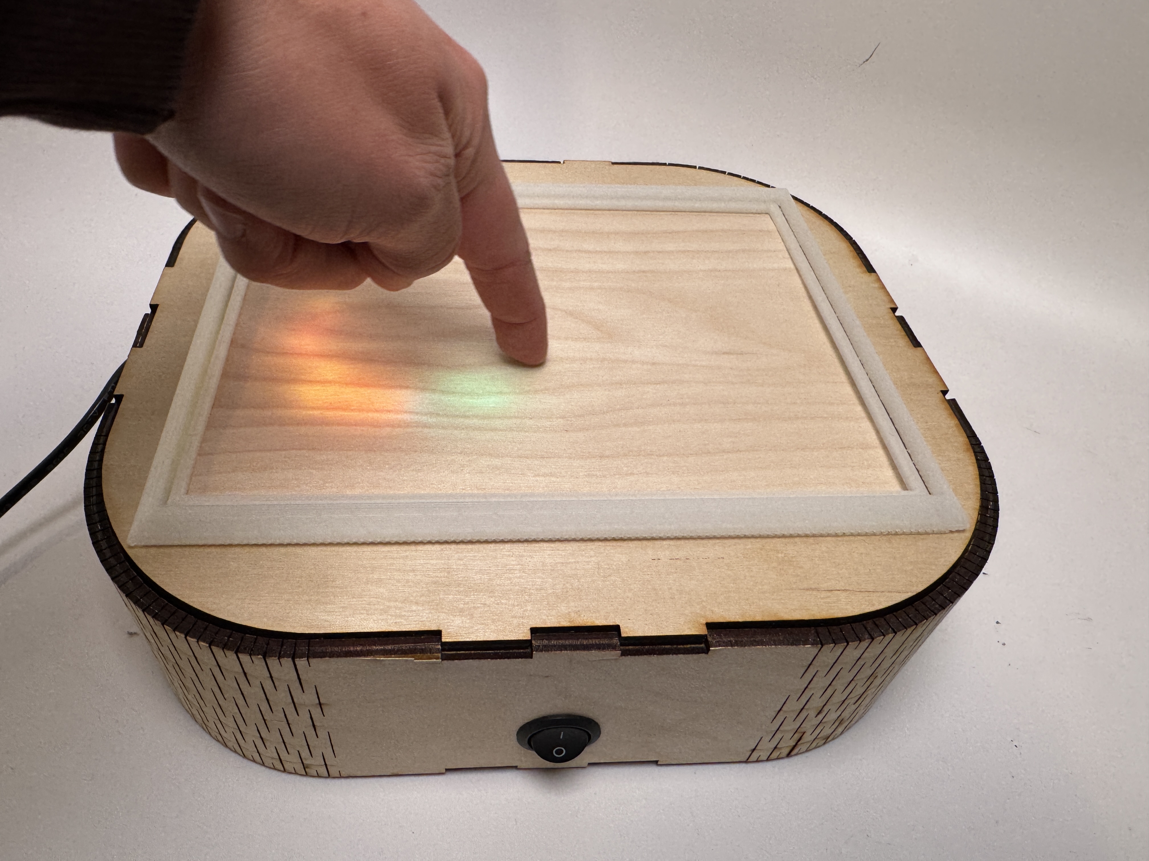 Compared to where I started at the beginning of the semester, this month-long project taught me that aesthetic exploration and fabrication will always include a healthy blend of mistakes, research, and extra time! I faced many challenges in integrating the lights and touch screen appropriately, but am really proud of how it came together as a functioning piece of artwork and engineering in the end. Similarly, this project serves as a foundation to expand this idea into furniture and/or installation art, perhaps through my Art, Engineering, and Making class next semester (Fall ’25). For more on Wöddha, check out my full write-up here.