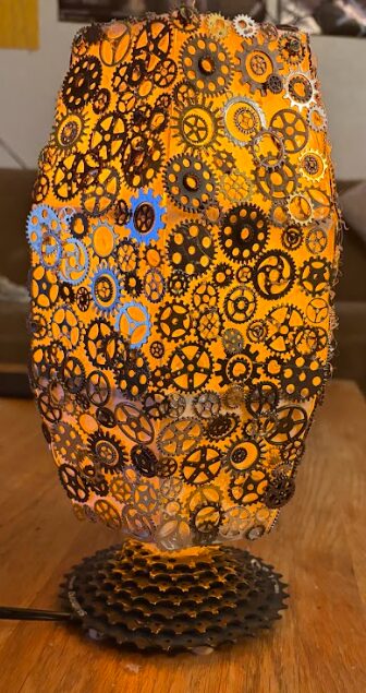 Here we were tasked with identifying an aesthetic that we wanted to pursue and create something that someone can interact with with some materials that are being recycled. For me, I created a Lamp since my room was low on lights and it was something I needed. From there I identified that I wanted to do something with the Steampunk aesthetic since I have always been fond of this. I also thought that it would turn out cool. I had several of these small gears, and I just replaced my bike cassette so I had that lying around and thought it would be a great base. I had almost all the materials besides the light and the socket so I bought those. below are the links to my post for this project