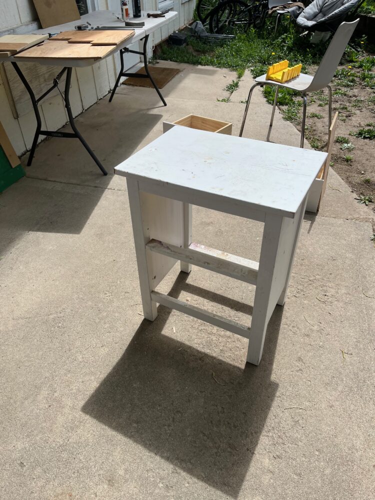 One other thing that I picked up from Resource Central was an old side table with two drawers, seen below. I planned on removing the rails from the drawers to use for my own drawers, but decided that using the drawers that I already have would save me a lot of time and effort. One of the drawers didn’t have a knob but that didn’t matter since I only needed one.