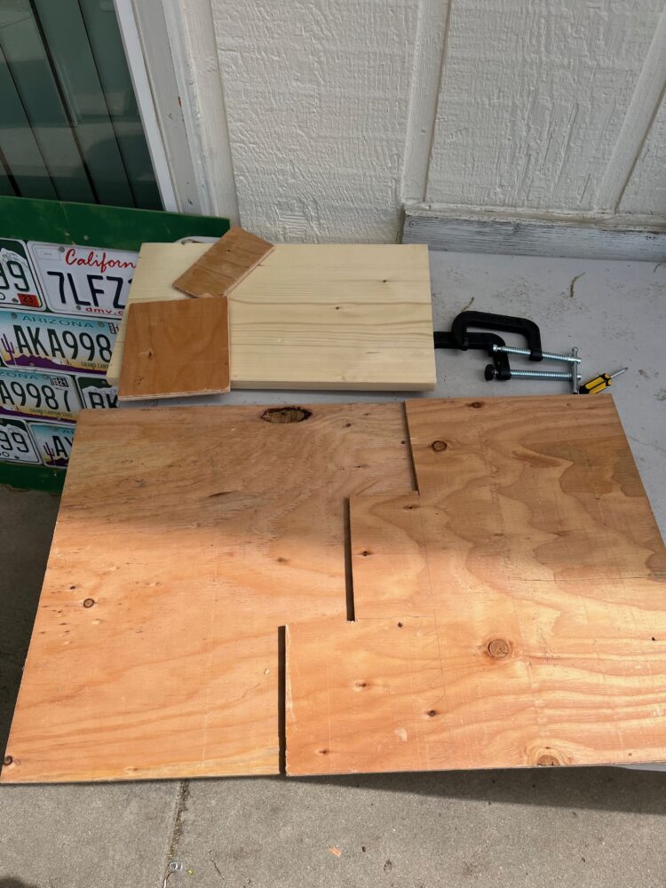 I was looking for wood that wasn’t painted or altered with screws, nails, or staples, and was able to find two large boards that would work well for the sides of the project, as well as a butcher block that would make and excellent top panel. Below are the pieces of wood I was able to find, and once I had the material, I began to plan out how I would cut them to make the staircase that I envisioned.