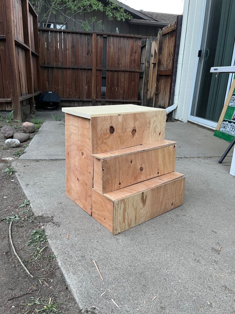 After I had all my pieces cut out I wanted to see how they fit together and where I needed to line up my nails, so I set them all together in the way that I wanted to assemble them to ensure I had cut them correctly. I discovered I had made a small error when attaching the side pieces together, but it wasn’t anything some sanding couldn’t fix. For the pictures below I hadn’t cut out the last few staircase pieces, but I was able to get a good sense of how the project was coming along without them yet.