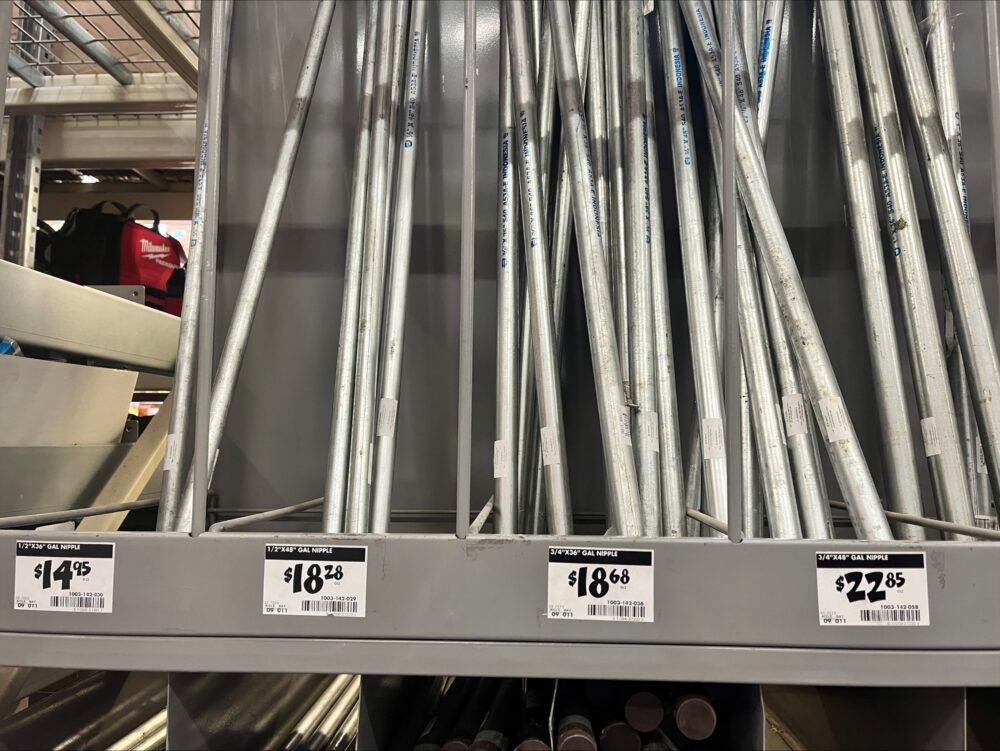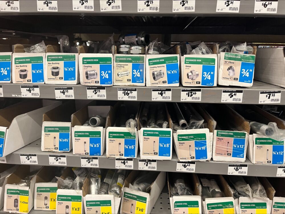 Originally, I had planned to source everything from McMaster-Carr a go to supplier for industrial hardware, and where I sourced the CAD part files. But when I actually started browsing their inventory, I quickly ran into a problem: cost. The four-way pipe fittings I needed for shelf supports were either too expensive or not available in the sizes I needed. Buying everything from McMaster would’ve pushed the project well beyond my budget, and didn’t have a great selection for pre-threaded pipe. So, I adapted. I decided to head to Home Depot and see what they had on the shelves. This ended up being a turning point in the project. The in-store inventory didn’t match my original design plans. Several fittings, especially the four-way joints, weren’t available. But I saw it as an opportunity rather than a setback. If I couldn’t build the exact rack I sketched, I’d simplify. Instead of incorporating built-in shelves, I shifted focus to creating a streamlined clothes-hanging system with a single crossbar. This also meant I could reduce material costs significantly while keeping the core function intact.