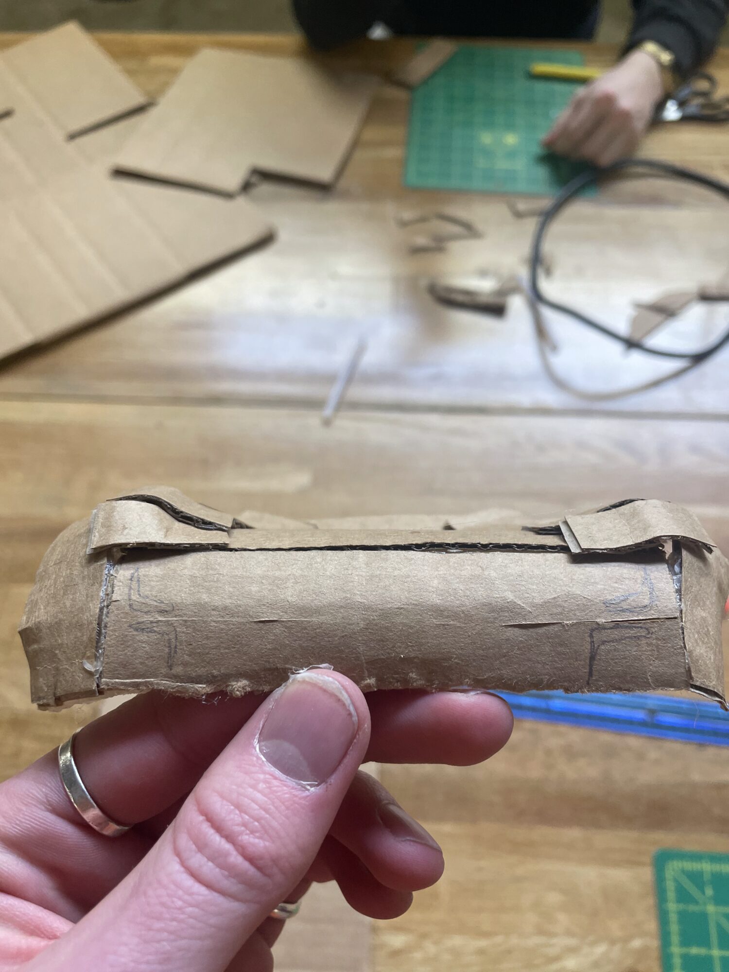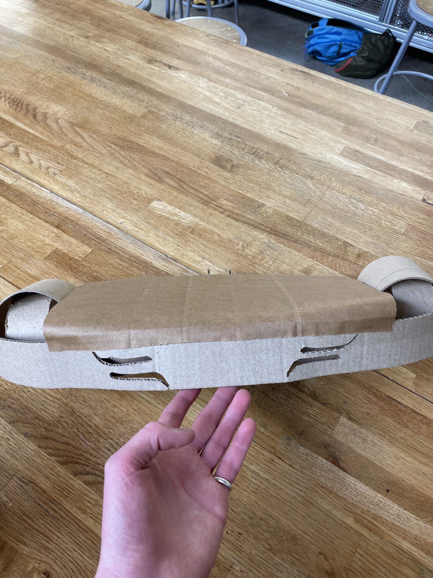 For this project, we built the front end of a car that needed to feel electric. We took inspiration from Star Wars speeders and other fantasy/futuristic vehicles that seemed otherworldly to help create this aesthetic. We had old pill bottles for headlights, which helped with a unique front end. We also added bands of cardboard to add texture and connect the front bumper to the wheel arches. https://community.unrulr.com/secure/search/posts/linoleum-example-spider