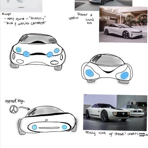 We started pretty quickly with the idea of going fully minimal and skipping the grill altogether. Electric cars don’t actually need one, so we didn’t want to just fake it for the sake of tradition or force a typical car front onto cardboard. We kept coming back to EVE from WALL-E as a reference, which helped shape this smooth, almost organic form that still feels futuristic and clean.