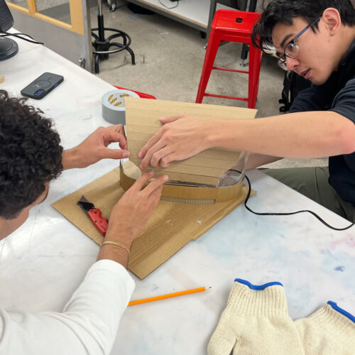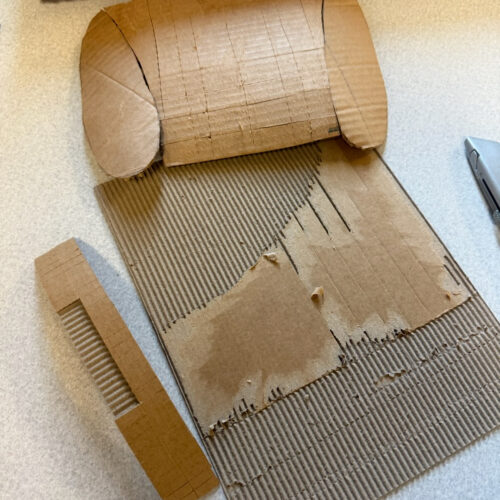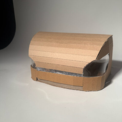 Along the way, we also experimented with thinning down cardboard to create a subtle grill alternative, something that gestures at the feature without fully committing to it. Overall, the process was a lot of testing, adjusting, and figuring things out as we went.