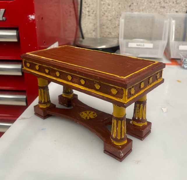 Painting ended up being the most detailed and time-consuming part of the process. It took patience to apply the gold accents cleanly without overlapping onto the darker surfaces.