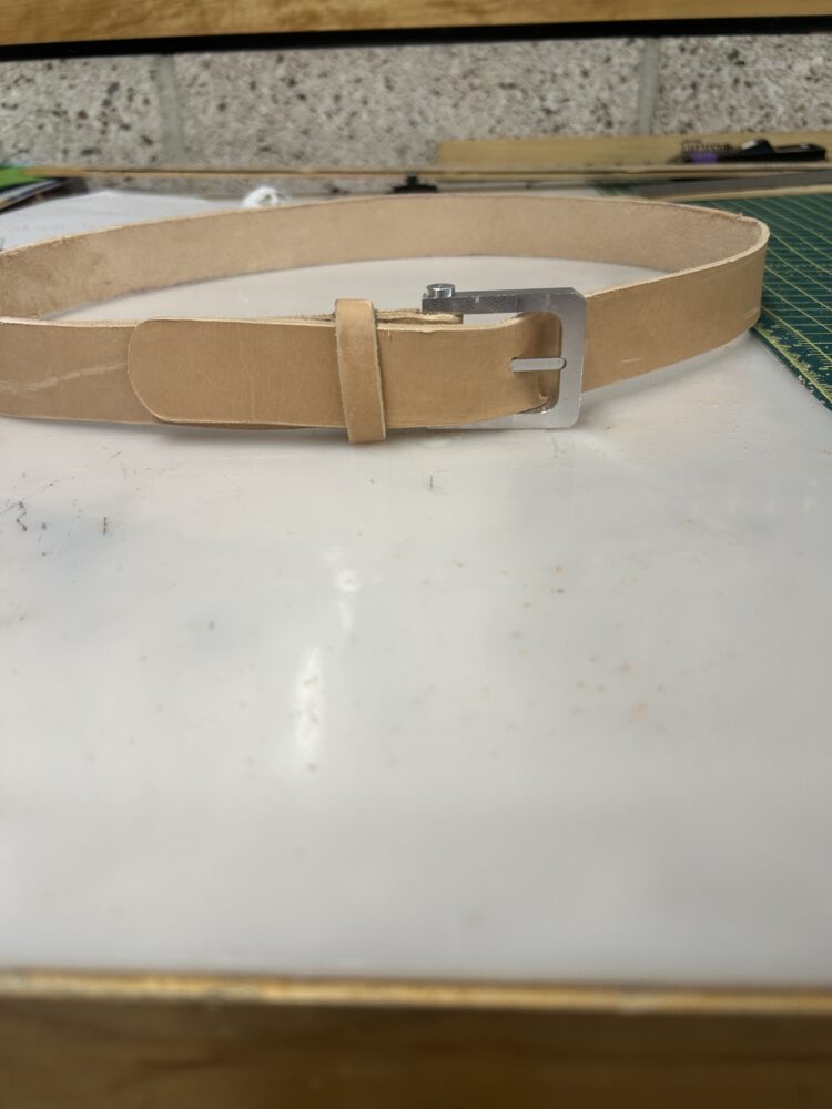I designed a minimalist belt buckle with a clean, simple aesthetic, modeling the design in SolidWorks before fabrication. Using scrap 6065 aluminum, I machined the main buckle frame. To verify the scale and fit, I also created a full 3D-printed prototype of the assembly. The project emphasizes both sustainability and simplicity, while serving the essential function of securing clothing.